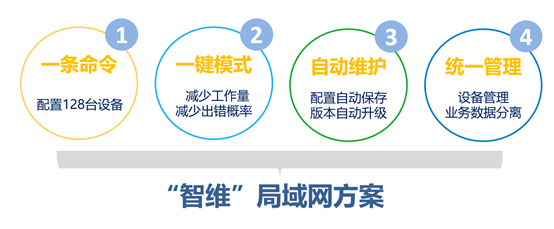 针对客户网络维护工作量大的现状,基于SDN的理念的“智维”局域网方案,实现维护工作量降低60%,减少出错概率,提高网络稳定。