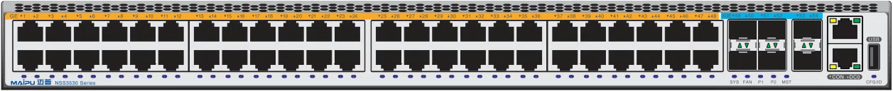 48个SFP千兆光口、6个SFP+光口(支持千兆、万兆模式),模块化双电源槽位 |